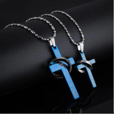 2018 Hot Sale Bible Lord Prayer Cross Couple Pendant Necklace Jewelry For Free Shipping