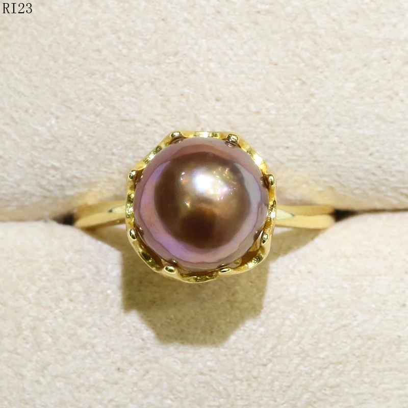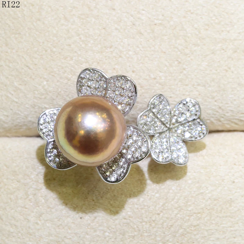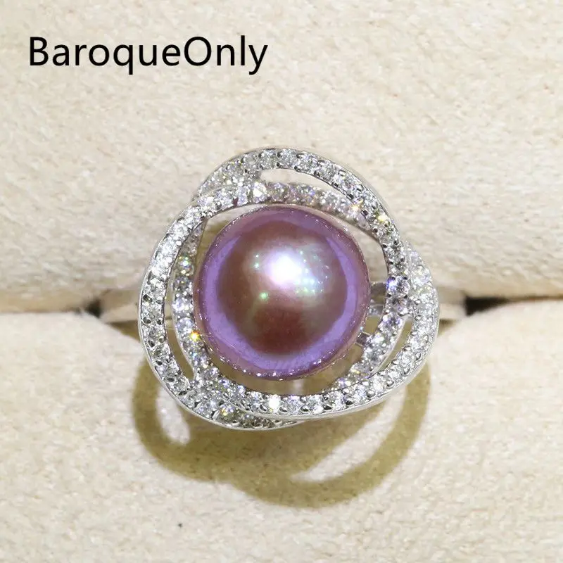 Review BaroqueOnly Zircon Inlaid 925 Rings Natural Color Freshwater Pearl 9-10mm Edison Pearl Ring Half-ba