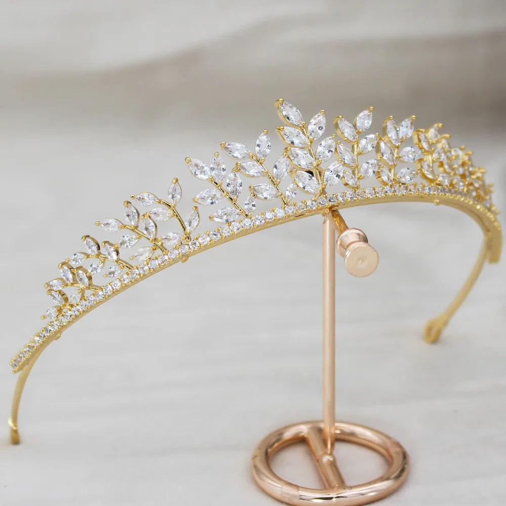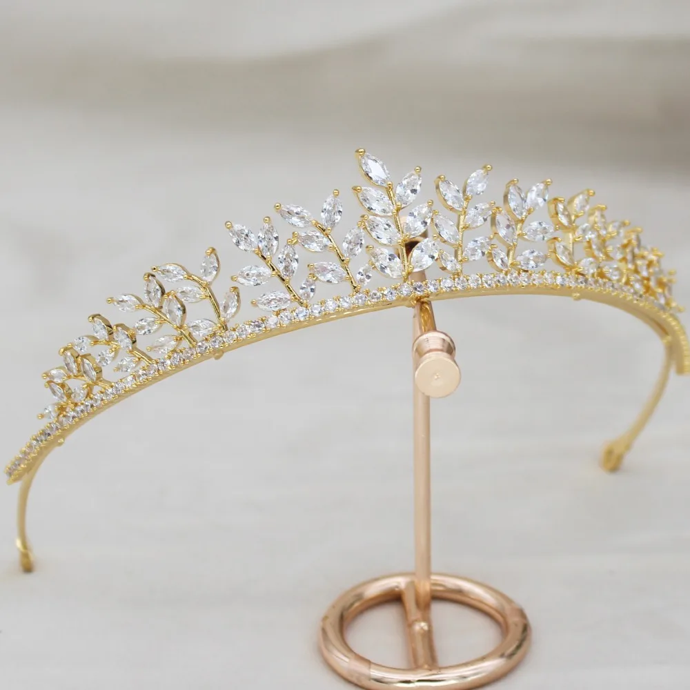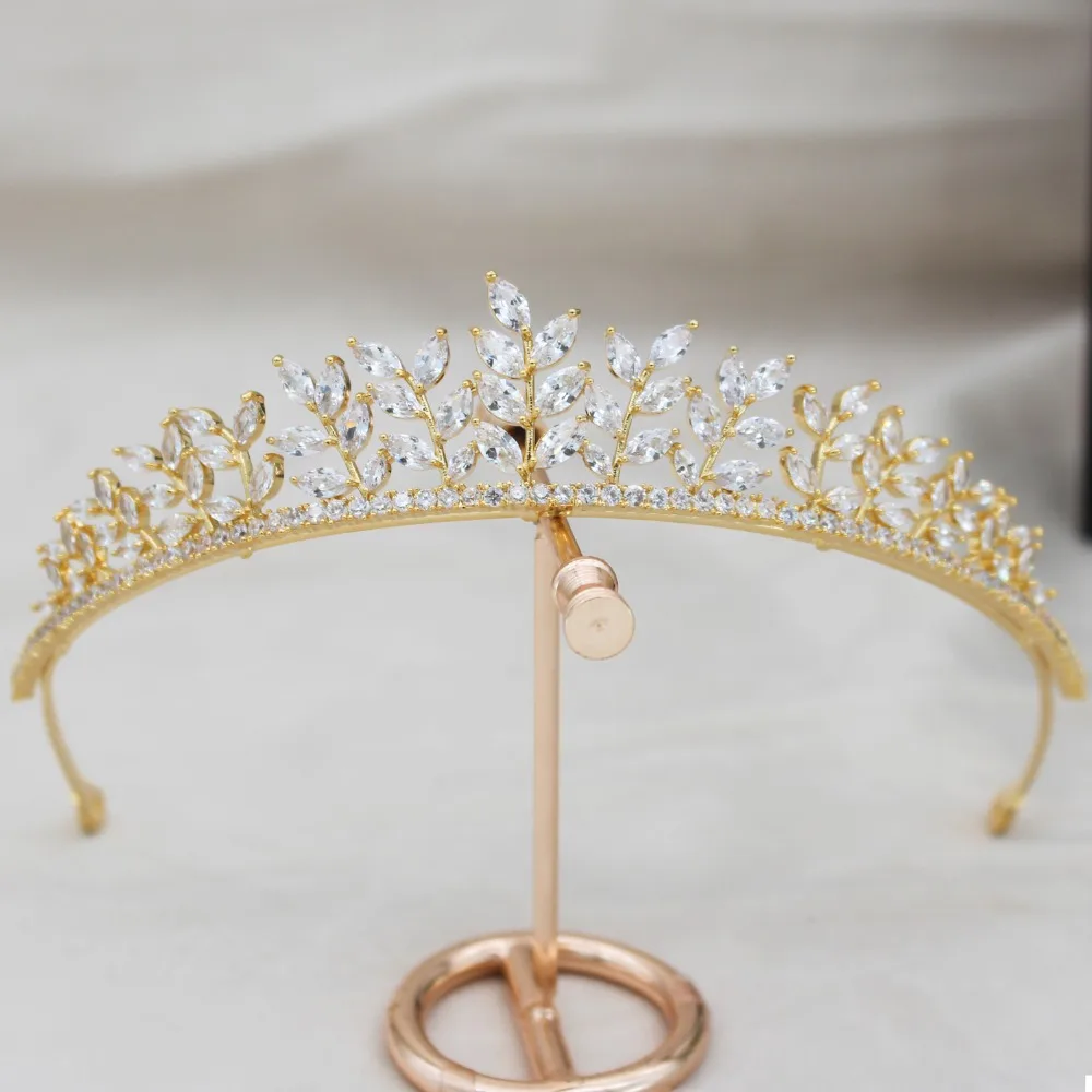 Parmalambe Zircon Golden Glinting Leaves Tiaras Bridal Headpieces Crown Hair Jewelry Wedding Hair A