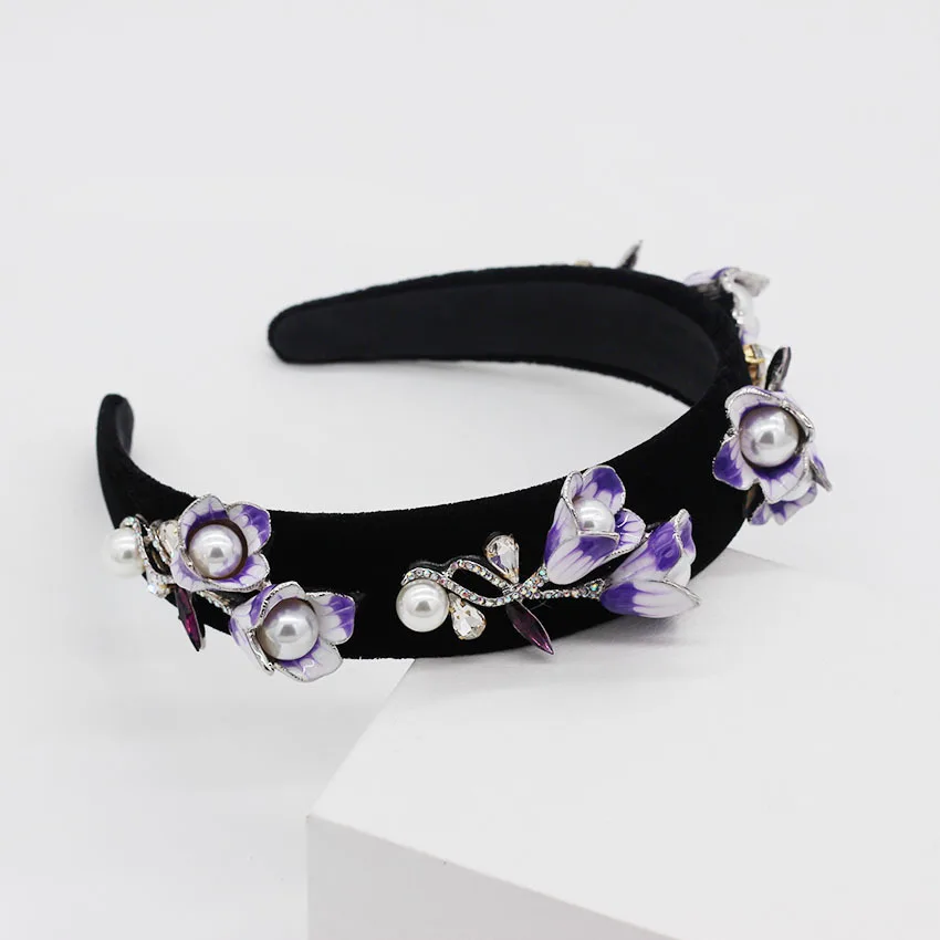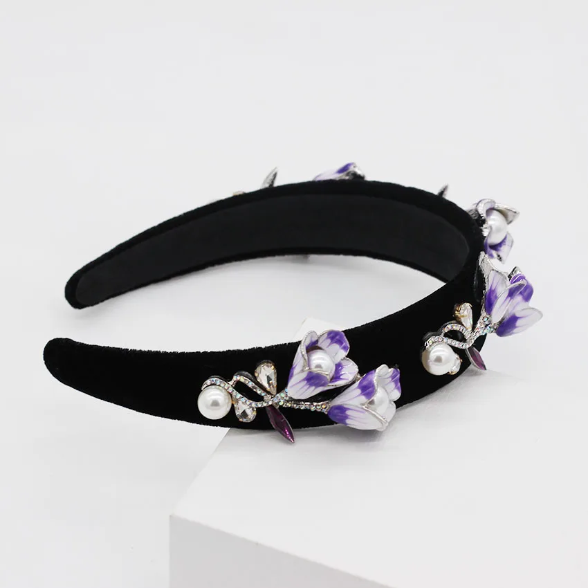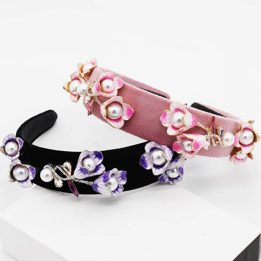 Best Quality New Fashion Rhinestone Pearl Trumpet Flower Headbands for Women Catwalk Wedding Party Hair Jewelry