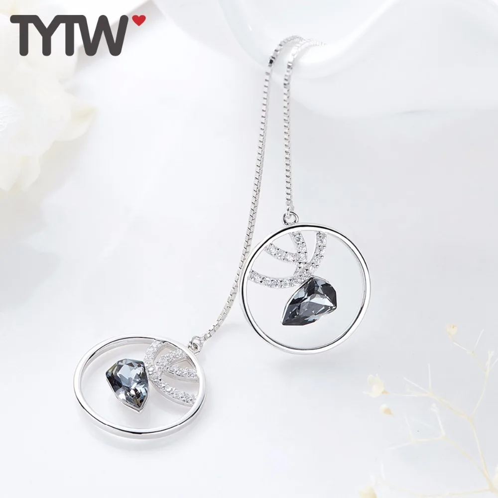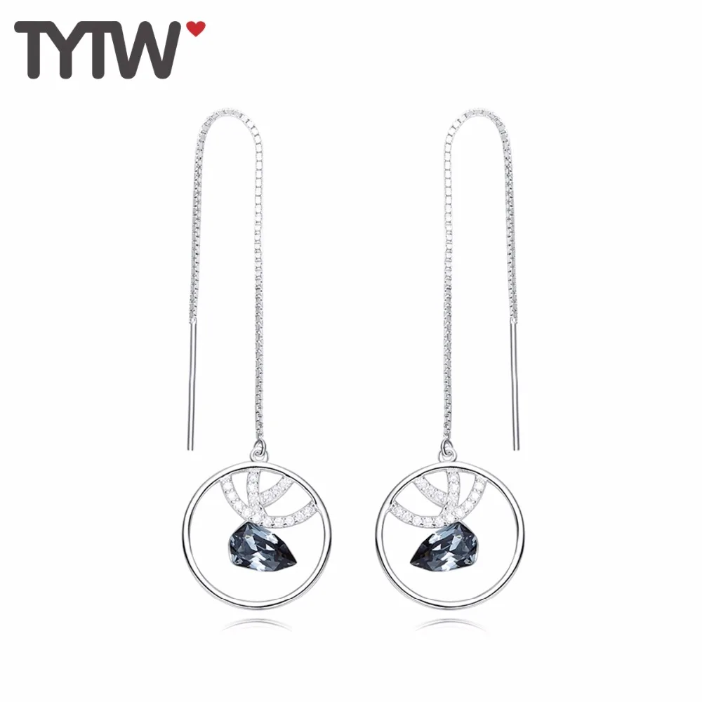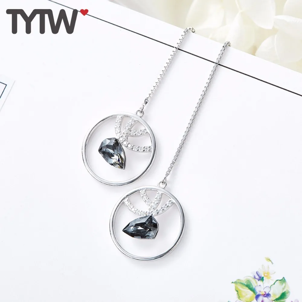 TYTW 925 Sterling Silver Earring Crystals from Austrian Women Korea Fashion Brand Long Earrings for