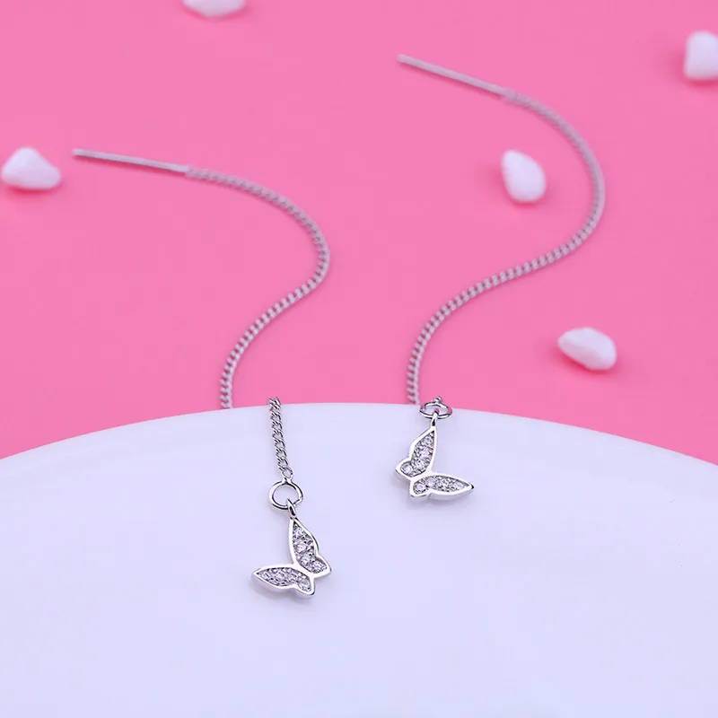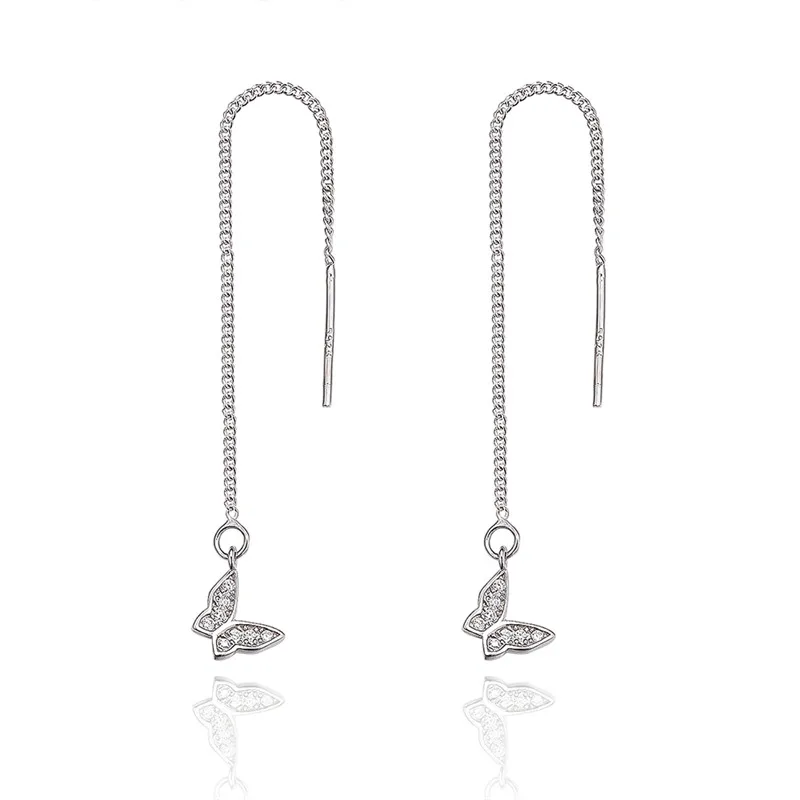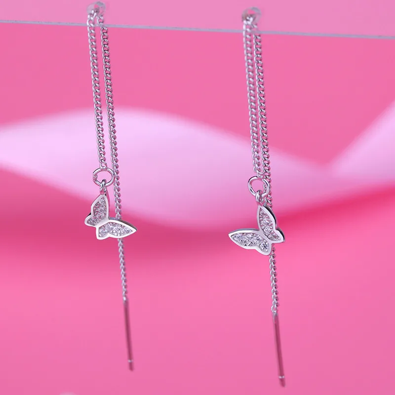 BEST VOJEFEN 925 Sterling Silver Lovely Butterfly With Cubic Zircon Long Tassel Dangle Earrings for Wome