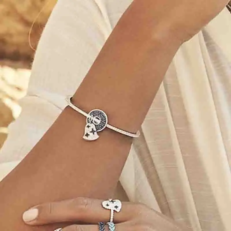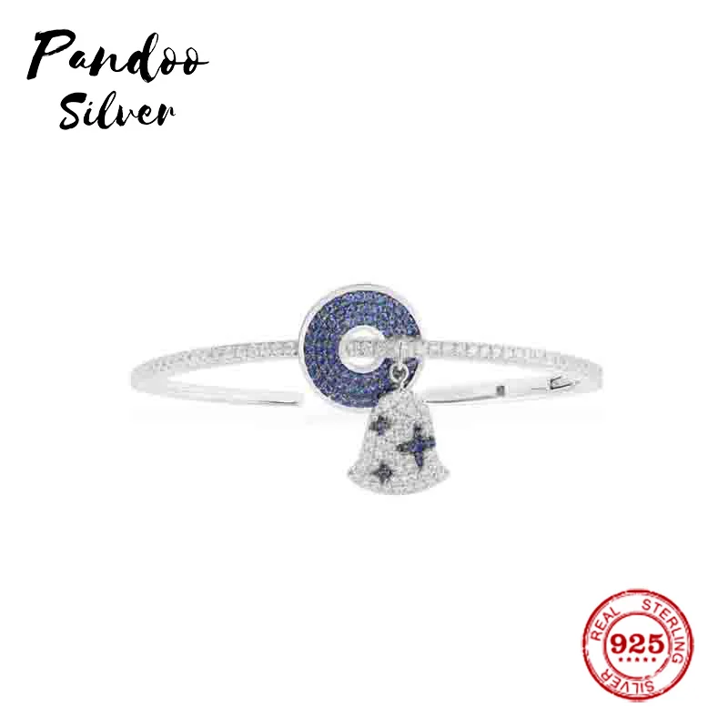 HOT Sale Fashion Charm Sterling Silver Copy 1:1 CopySilver Navy & White Wind Chimes Opening Cuff Women Monac