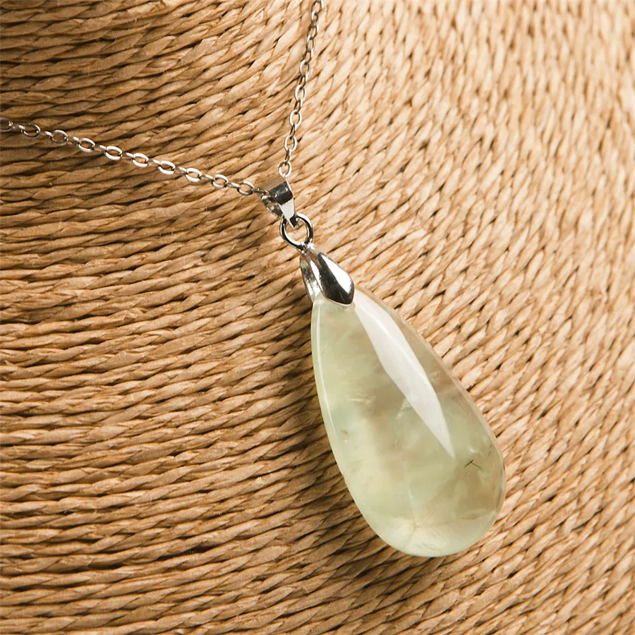 2018 Newly Genuine Natural Green Crystal Women Unique Necklace Water Drop Bead Pendants 33*18*8mm F