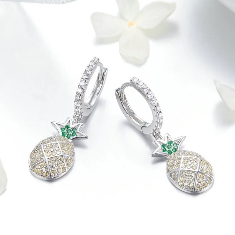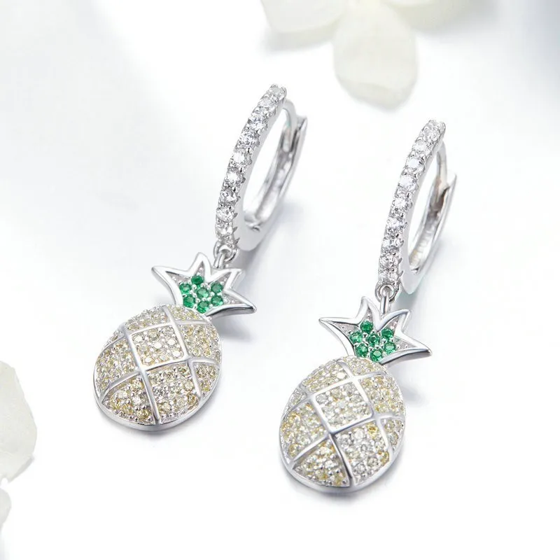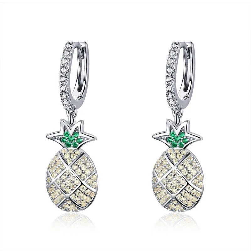 Best Seller Fashion 100% 925 Sterling Silver Summer Pineapple Dazzling Cubic Zircon Drop Earrings for Women Wed