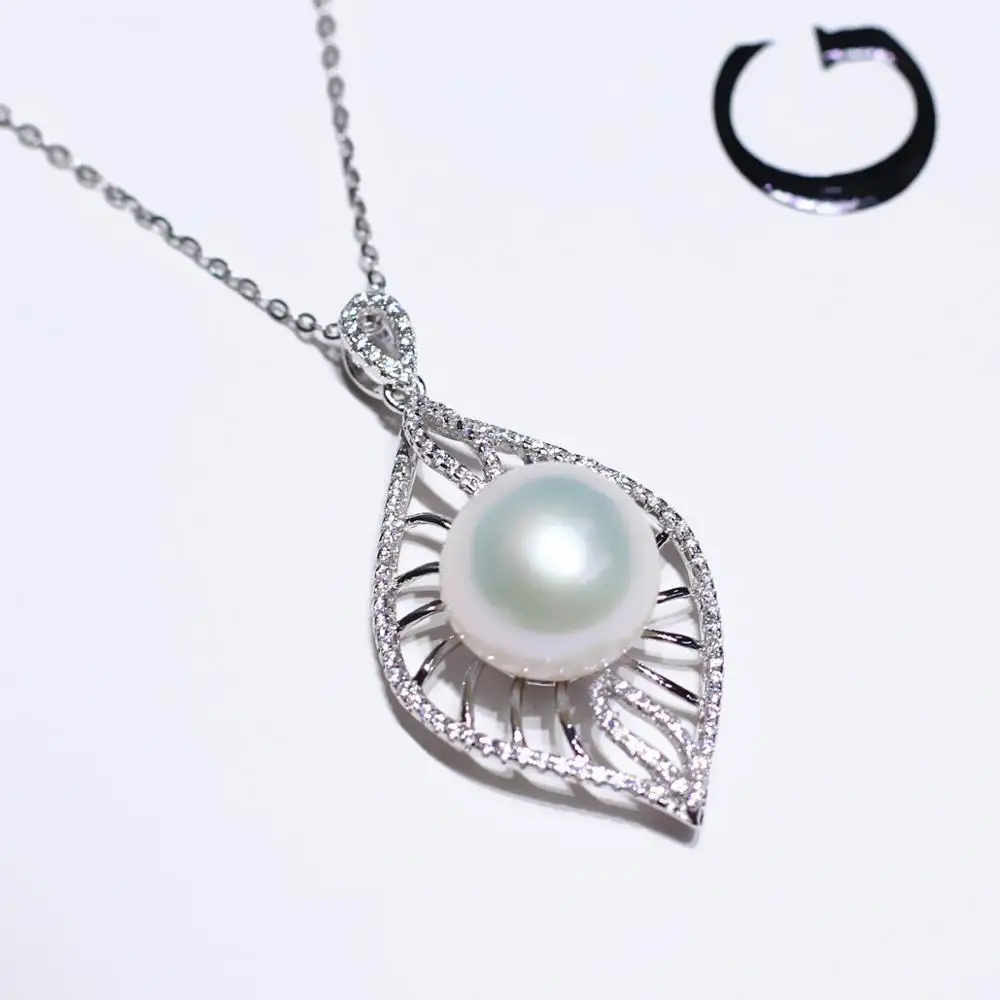 BEST S925 Sterling Silver Round Pendant Setting rhinestone Cameo Cabochon Base Tray Pearl Making Jewelry