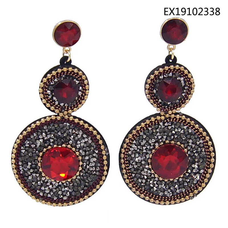 Yulaili New Fashion Crystal Earring Rhinestone Red Pink Color Round Shape Earrings for Women Jewelr